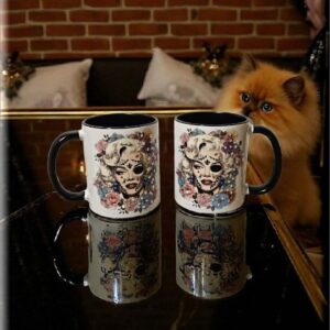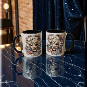 Start your day with a touch of glamour and cultural flair using this elegant rhinestone-embellished Marilyn Monroe Dia de los Muertos coffee mug. The sparkling rhinestones accentuate Marilyn’s sugar skull design, making every sip a celebration of beauty and remembrance. Perfect for coffee lovers seeking a stylish, festive morning ritual.